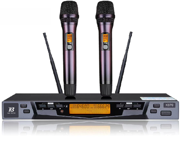 1、一拖二无线麦克风,金属管渐变色手持,做工精致,手感不错,约450G,氧化着色,永不掉色。防摔耐磨性能好,开关可以反复按10000次。主机锌合金面板。可上机柜。